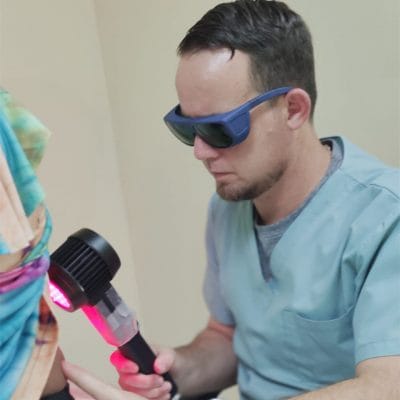 10-60W Unattened Laser Therapy with movable lamp and temperature probe can be rotary at 360 degree angle not just the lamp head, but also the bracket, the red light is in the natural visible spectrum, whose wavelength range is 610-980nm, it has photochemical effect as well as thermal effect with strong penetration to human tissue, by irradiation, red light can increase electron transfer of mitochondrial inner membrane to increase ATP synthesis, improve the activity of fibroblasts, irradiation of red light can enhance affected lymph circulation, promote blood circulation, accelerate cellular metabolism and reduce the levels of serotonin in inflammatory sites, thus getting rid of all kinds of pain and achieving the analgesic effect, promoting wound healing.
