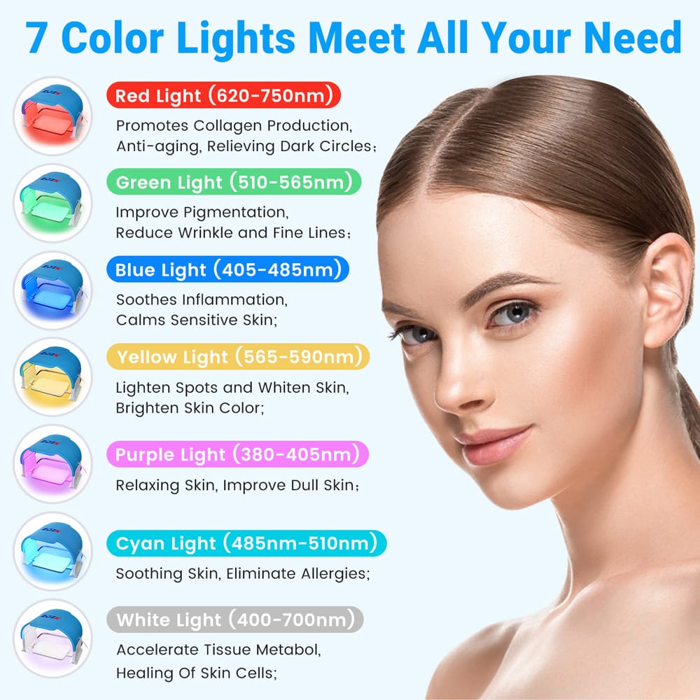 7 Colors LED Skincare Equipment use RGB LED diodes for light therapy,which can effectively skin tightening,remove wrinkles & smooths fine lines.