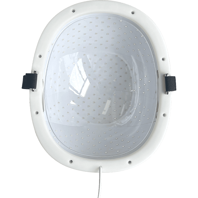 The Near-Infrared Light Therapy Helmet utilizes 1070nm wavelengths for deep tissue penetration into the brain. Its primary mechanism, photobiomodulation (PBM), enhances cellular respiration by stimulating mitochondria, increasing ATP production for cellular repair and regeneration. The therapy also promotes nitric oxide release, improving cerebral blood flow, and provides neuroprotection by reducing oxidative stress and stimulating neurogenesis. Additionally, it modulates neuroinflammation, supporting a healthier brain environment.